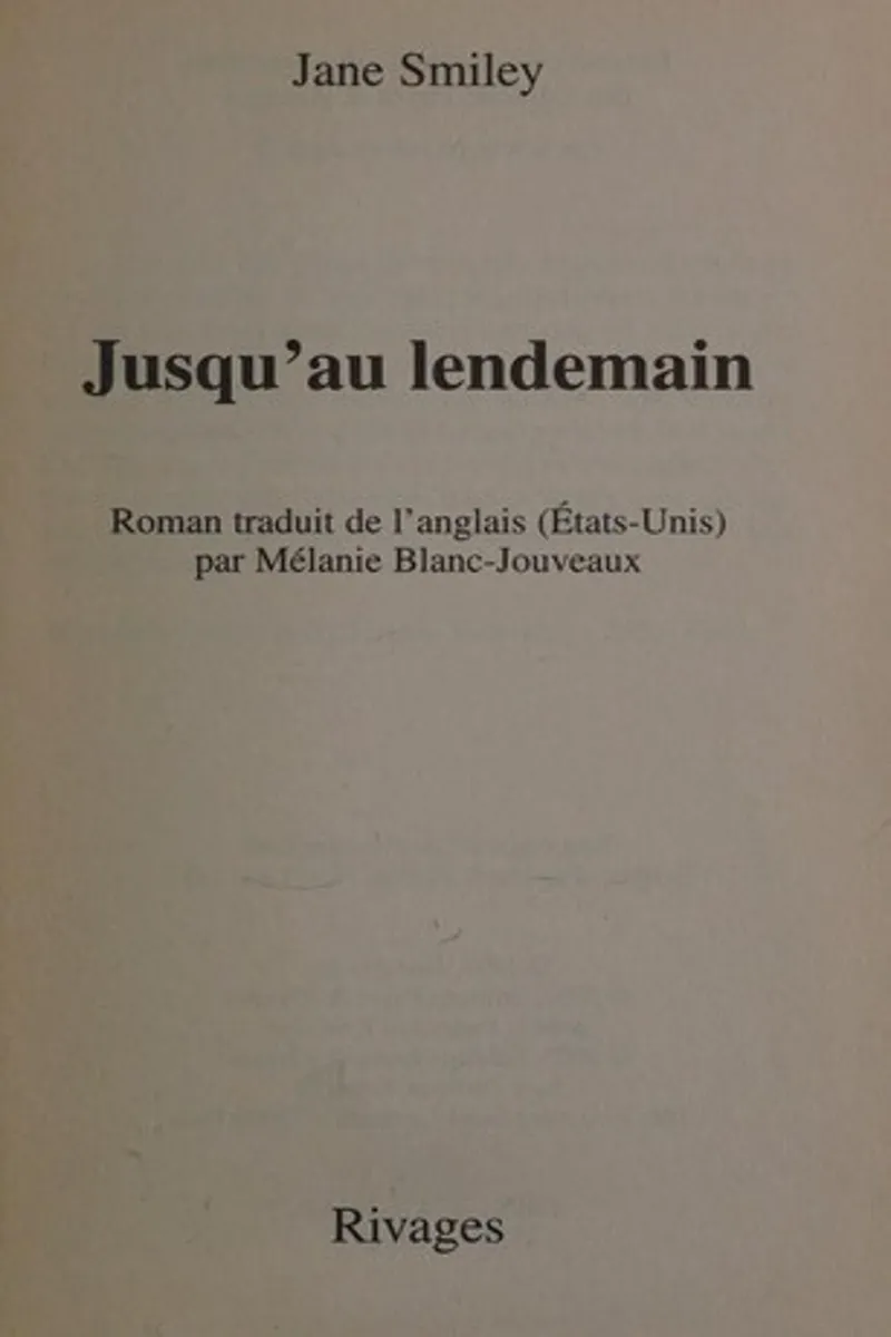 Jusqu'au lendemain was written by Jane Smiley.
