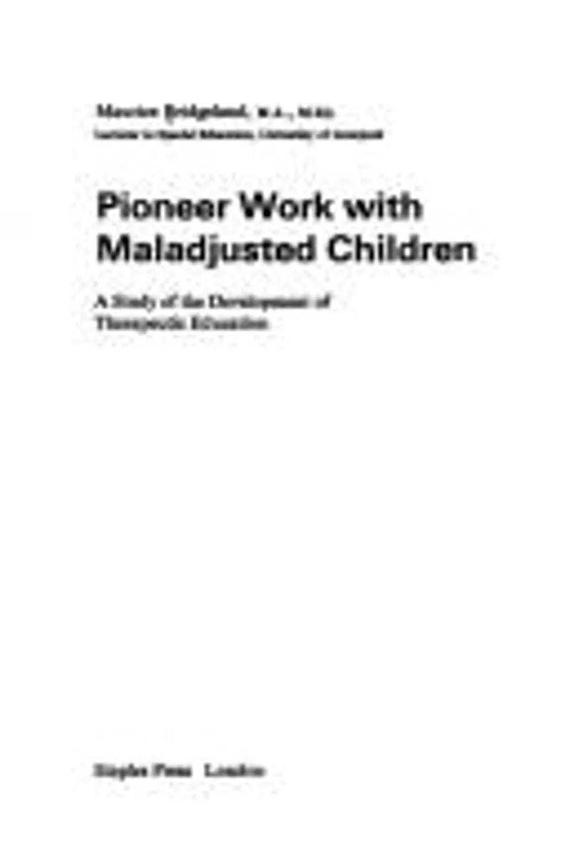 Pioneer work with maladjusted children is a Child psychiatry, Educational psychology book.
