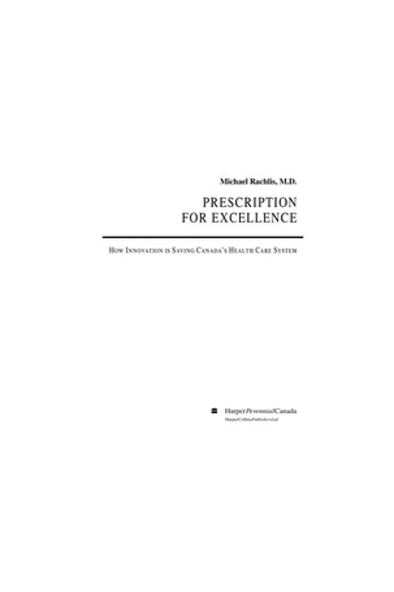 Prescription for excellence è un health care reform, reforme book di Michael Rachlis. Nel 2004. Conta 418 pagine.